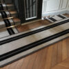 Axminster Stair runners, Transat. Black, Mid Charcoal, Shale, White